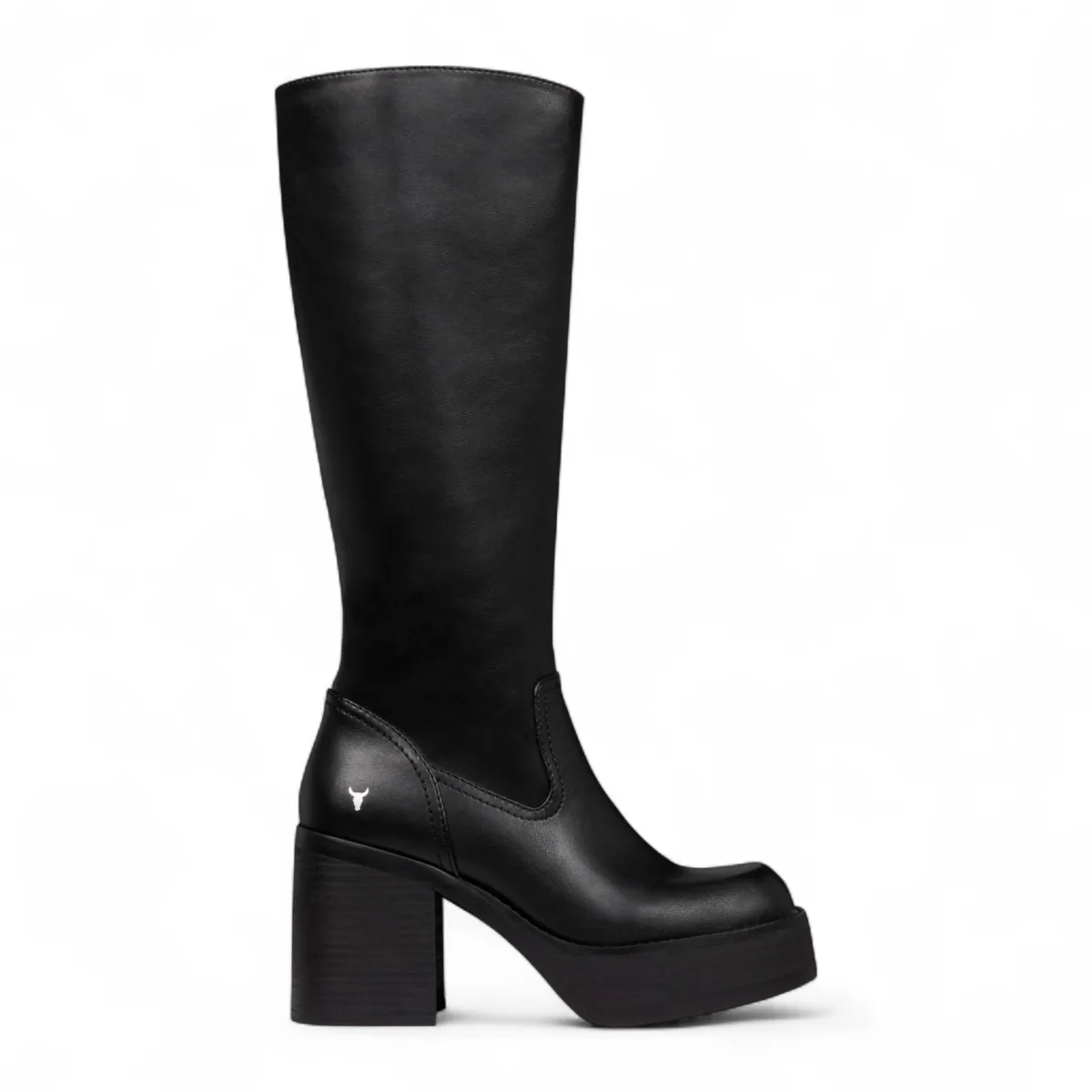 Windsorsmith Dames Zwarte Kunstleren Kniehoge Platform Hak Laarzen – Niche