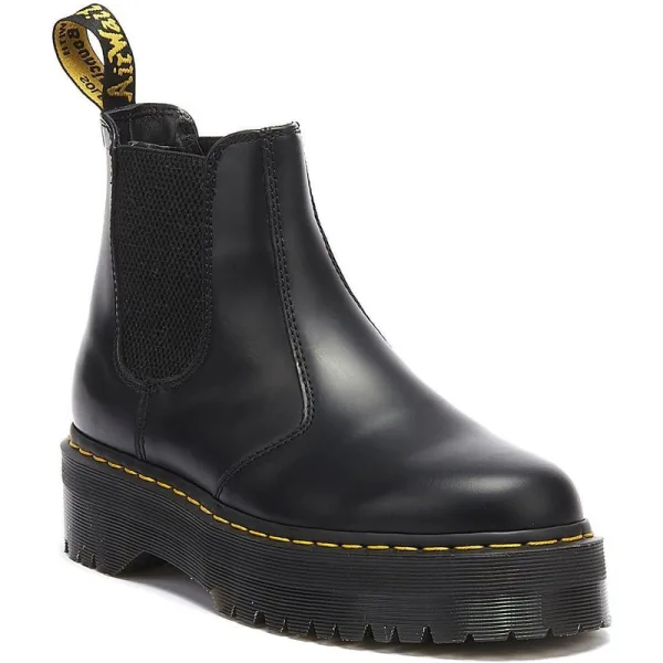 De 2976 Chelsea boots komen in een nieuw silhouet voor wie houdt van de Jadon laars. Voor het eerst ooit zit de Dr. Martens 2976 laars op een chunky, empowerende quad-zool. Gemaakt van gepolijst zwart leer en voorzien van elastische zijpanelen en merkhakbalken die zorgen voor de perfecte pasvorm en eenvoudig aan- en uittrekken. Compleet met het kenmerkende DM’s merk en gele weltsteek. – Olie-, vet-, zuur-, benzine- en alkali-bestendige zolen – Goodyear Welt constructie – Heat-sealing proces en kenmerkende ‘bouncing soles’ van Air Wair.