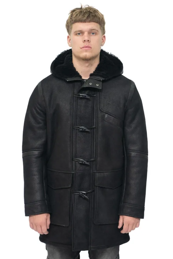Winterjas voor heren van schapenvachtleer met capuchon-Montpellier