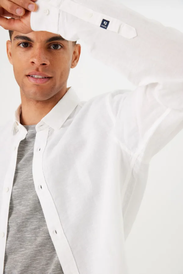 Basic linnen overhemd. Een goede basic als deze mag niet ontbreken in jouw garderobe! Dit overhemd heeft lange mouwen, een knoopsluiting en een regular fit. Dit item is gemaakt van 55% linnen en 45% katoen.