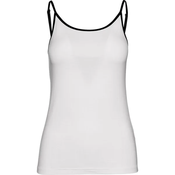 Witte top met bandjes van stretch-jersey, viscose-elastaan. De bandjes en het boordje bij de hals en de armsgaten zijn van zwarte stretchstof, viscose-elastaan. De bandjes zijn verstelbaar voor een perfecte pasvorm. Geschikt. Afmetingen voor maat 36/S (in cm):Schouderbreedte-29, Borst-39, Taille-36, Zoomlijn-41, Lichaamslengte-61. 92%viscose-8%elastan