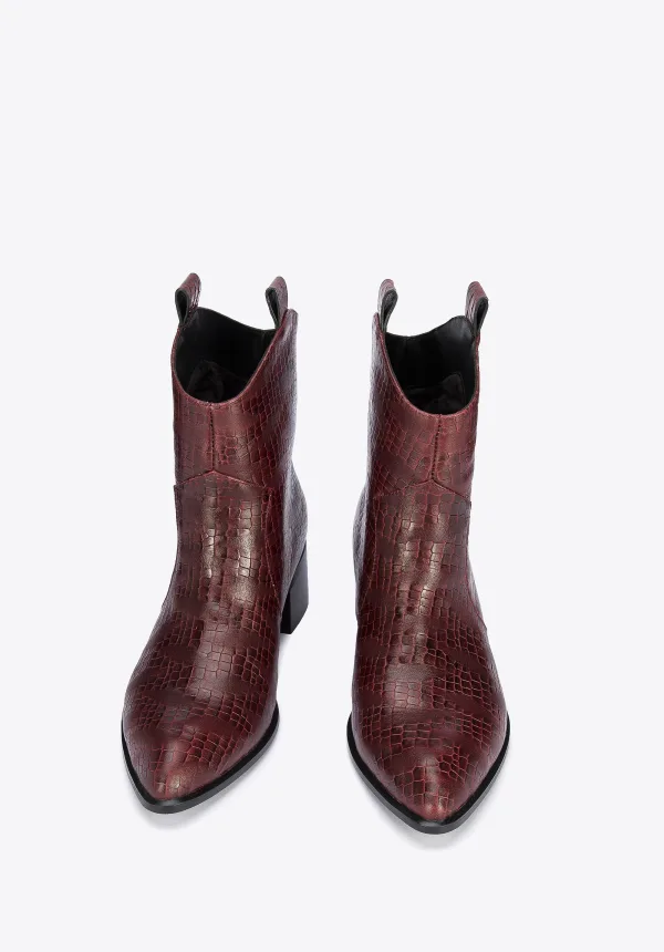 Wittchen Dames Croco Leren Cowboylaarzen Bordeaux Natuurlijk Leer