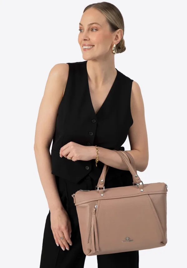 Wittchen Dames echt leren shopper met kwastje beige