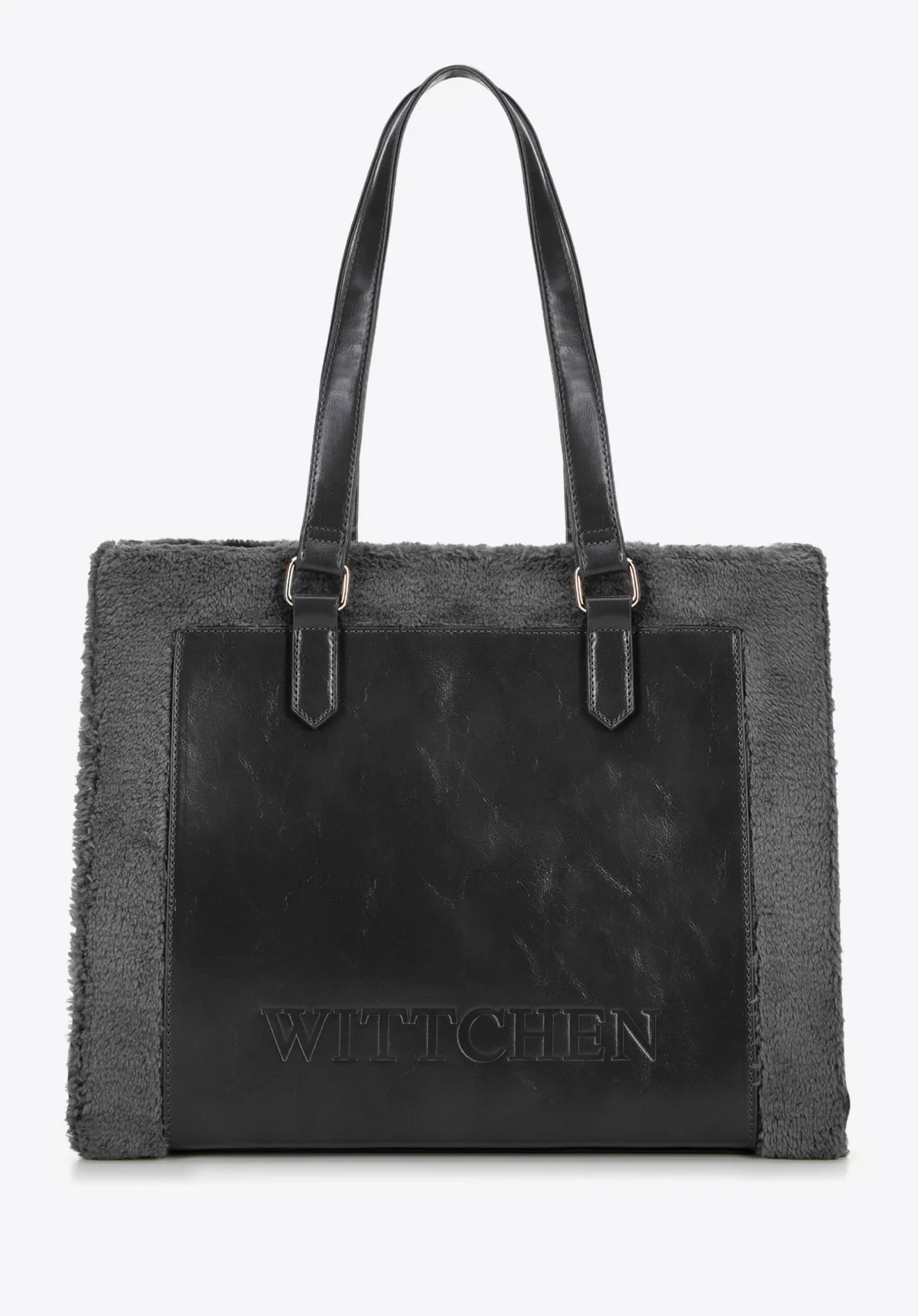 Elegante shopper met logo in reliëf. Ontdek onze elegante shopper van eco-leer, afgezet met bont en voorzien van een groot WITTCHEN-logo in reliëf. Het stevige ontwerp en de verstevigde bodem zorgen ervoor dat de tas zijn vorm behoudt, zelfs als hij vol is. Voor wie is deze tas? Als u op zoek bent naar een tas die ruimte combineert met elegantie, dan is onze shopper iets voor u; perfect voor vrouwen die waarde hechten aan hoge kwaliteit en modieuze details. Onze tip: Deze tas past perfect bij een klassieke jas, een oversized trui en een jeans en voegt een vleugje elegantie toe. Perfect voor op kantoor, winkelen en sociale bijeenkomsten. Gecombineerd met enkellaarsjes met hak en een elegante jurk creëert het een unieke, vrouwelijke look. Belangrijkste kenmerken: Materiaal: Eco-leer imiteert de look van natuurlijk leer en biedt elegantie en duurzaamheid. Ontwerp: Luxe bont aan de randen en het logo van de fabrikant in reliëf geven de tas elegantie en een uniek karakter, waardoor u in elke situatie opvalt. Binnenorganisatie: Een shoppertas met twee open vakken en één vak met rits maakt het gemakkelijk om kleine spullen te organiseren en belangrijke items, zoals een telefoon of portemonnee, veilig op te bergen. Capaciteit: De tas is geschikt voor A4-formaat, waardoor hij ideaal is voor werk, universiteit of winkelen, en biedt voldoende ruimte om gemakkelijk documenten, boeken en andere benodigdheden mee te nemen. Samenstelling: Eco-leer; imitatiebont: polyester; voering: 100% polyester. Comfortabele en functionele kenmerken: Draagcomfort: Twee handvatten zorgen ervoor dat u de tas over uw schouder of in uw hand kunt dragen, aanpasbaar aan uw behoeften en voorkeuren. Beveiliging: Een rits beveiligt de inhoud van de tas tegen onbedoeld openen, zodat al uw spullen veilig blijven. Praktische details: Het stevige ontwerp en de licht verstevigde bodem zorgen voor stabiliteit en duurzaamheid, waardoor de tas zijn vorm en elegante uiterlijk behoudt, zelfs als hij vol is. Door te kiezen voor onze shoppertas, investeert u in een tas die elegantie combineert met functionaliteit, en u comfort en stijl biedt voor dagelijks gebruik.