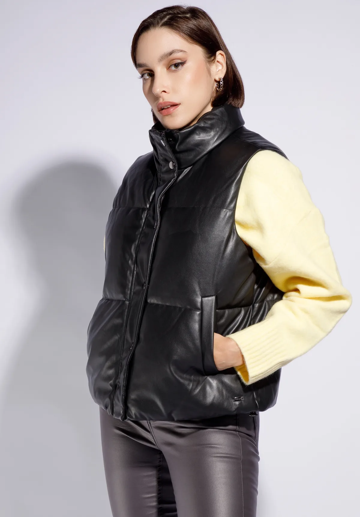 Wittchen Dames gewatteerd vest van eco-leer, zwart