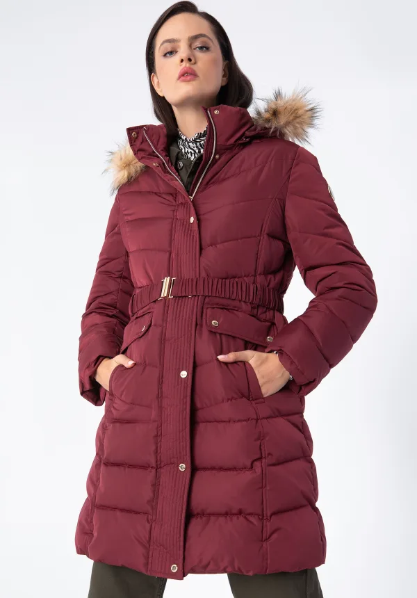 Wittchen Dames Gewatteerde Jas met Riem Donkerrood Polyester