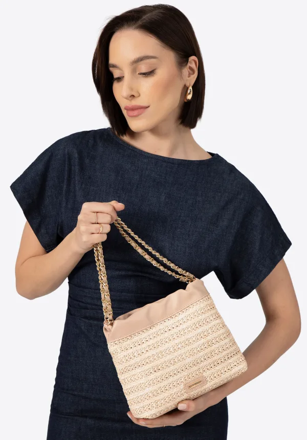 Wittchen Dames Geweven Crossbody Tas met Kettingen, Beige