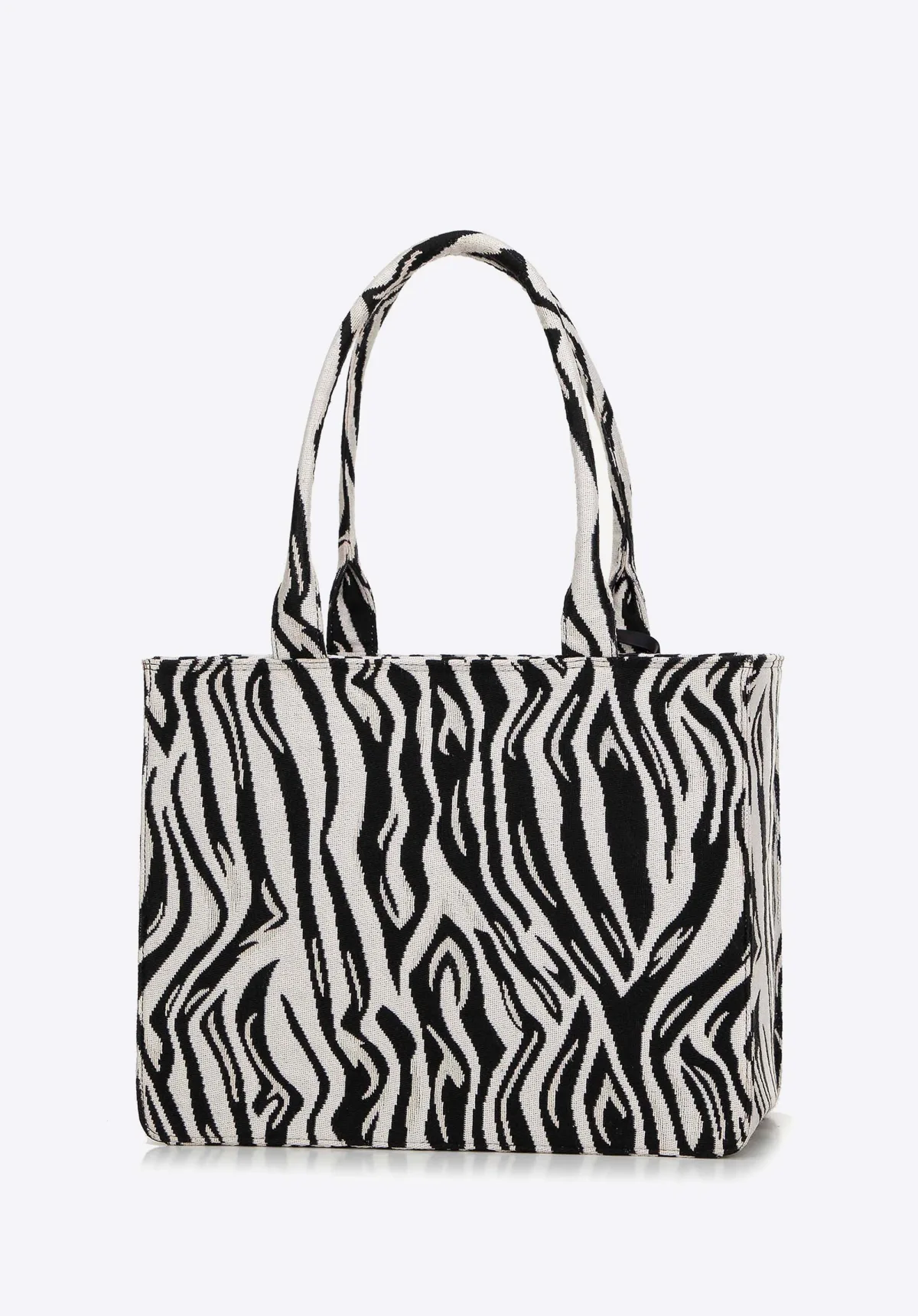 Wittchen Dames jacquard shopper met kwastje, wit en zwart