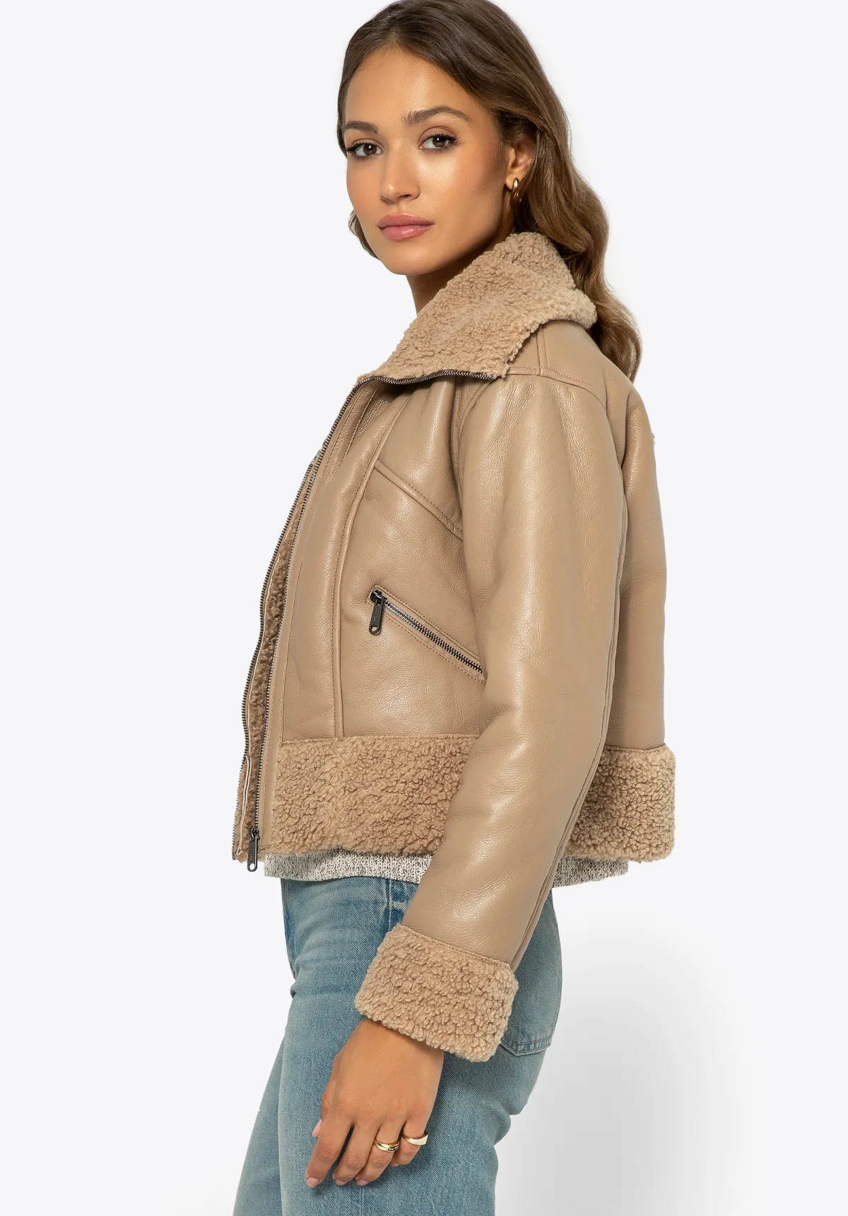 Wittchen Dames korte beige jas met bont, beige eco-leer
