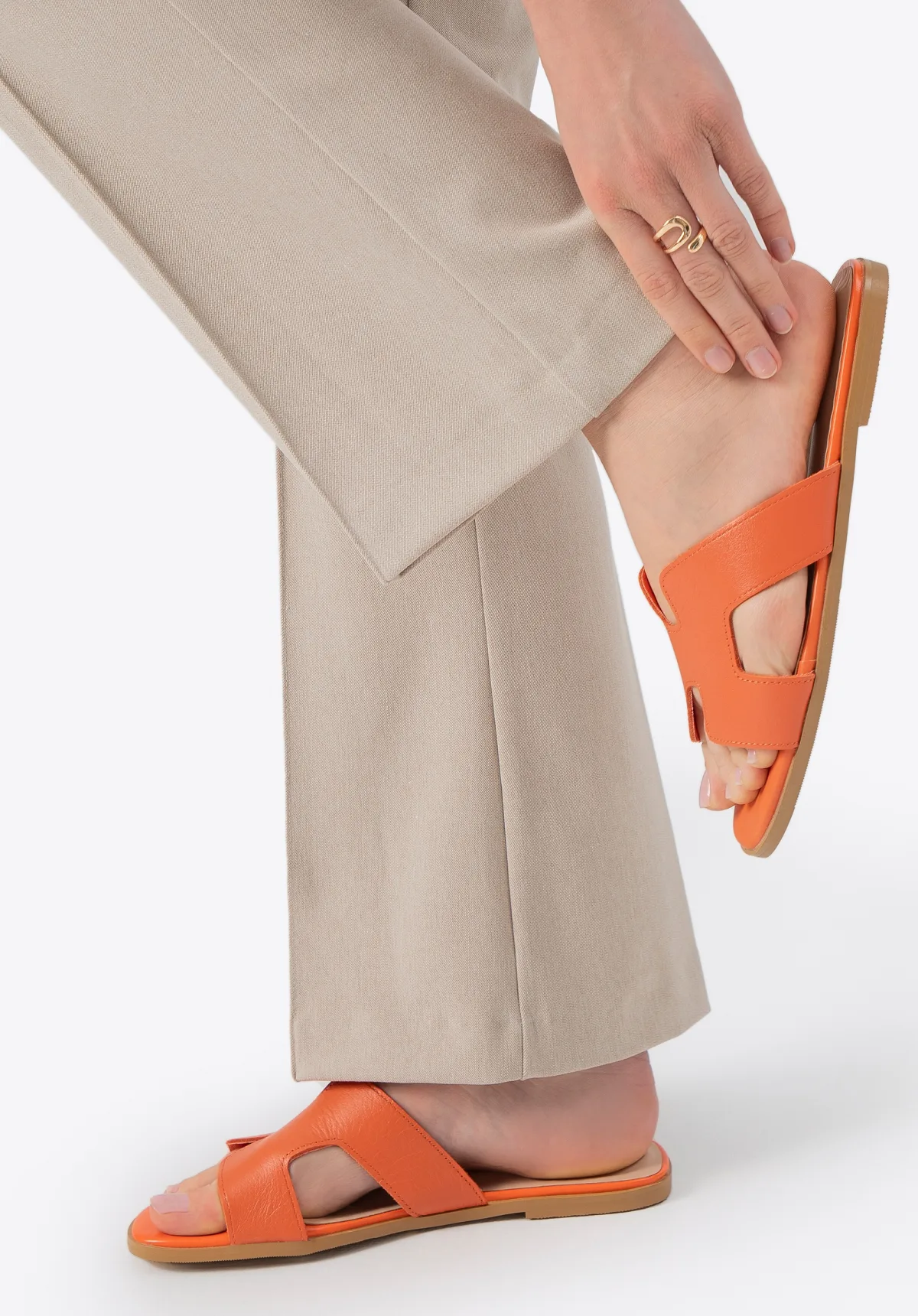Wittchen Dames Leren H-vormige Slippers Oranje Natuurlijk Leer