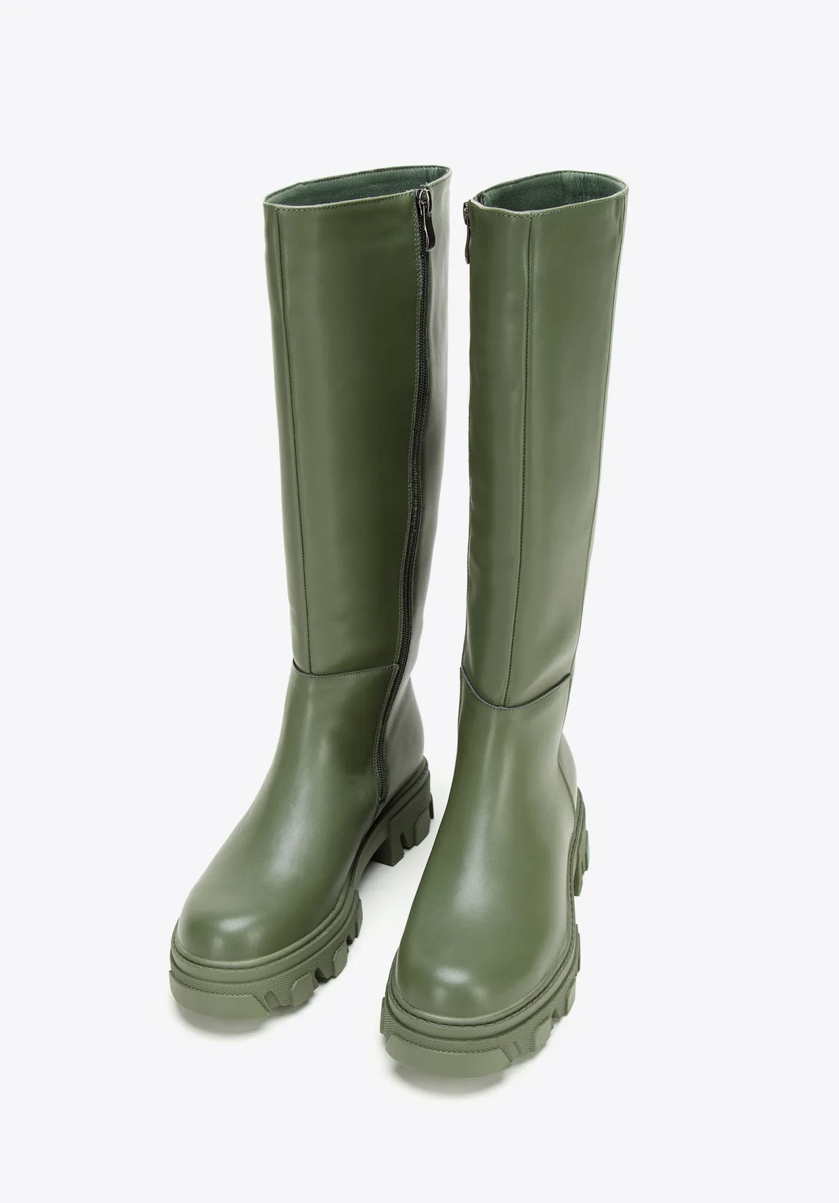 Wittchen Dames leren laarzen met dikke zool en rits, donkergroen