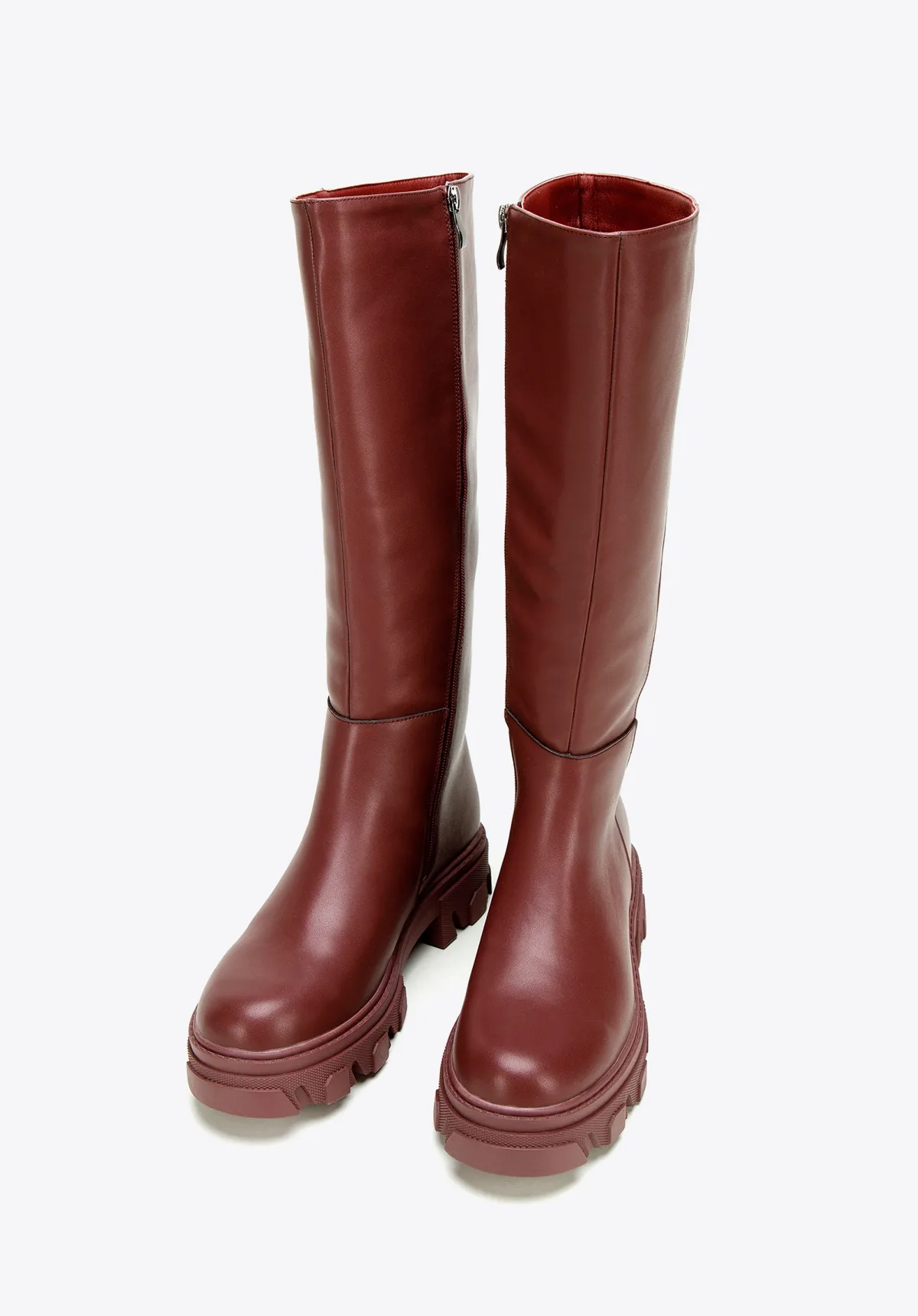 Plateaulaarzen voor dames. Deze stijlvolle laarzen zijn een geweldige keuze voor de herfst en vroege winter. Ze zijn gemaakt van hoogwaardig echt leer. Ze hebben een dikke plateauzool met een profiel, die zorgt voor goede grip en uitstekende isolatie tegen de kou. Een rits aan de binnenkant maakt ze gemakkelijk en snel aan te trekken. Het gladde, onopvallende ontwerp past bij vele outfits: een jurk met patroon, je favoriete jeans of een oversized trui. Leren dameslaarzen met een dikke zool en rits zijn een tijdloos accessoire voor vele seizoenen. Onze tip: dit zijn geweldige schoenen voor elke dag. 100% echt leer; leren binnenzool met zachte voering; ritssluiting aan de binnenkant; synthetische zouten; ronde neus. Echt leer Echt leer / textielmateriaal Synthetisch materiaal