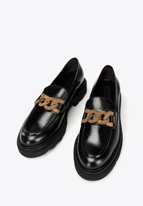 Wittchen Dames Leren Mocassins met Decoratieve Ketting op Platform Zwart