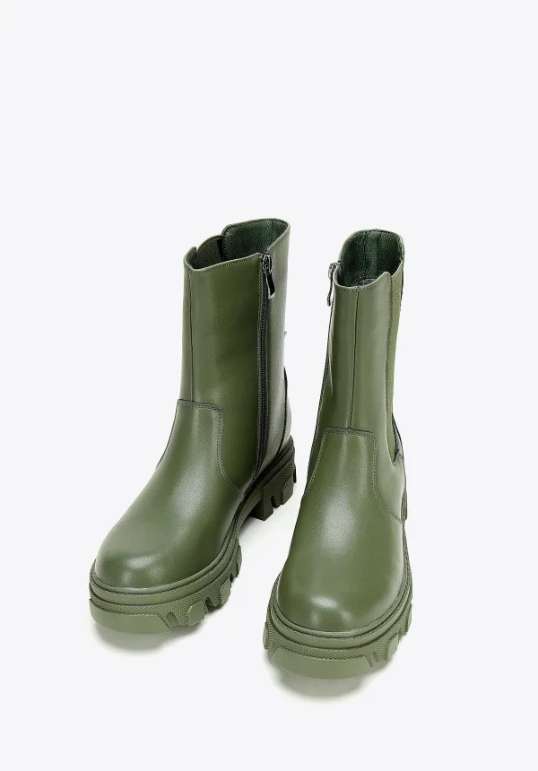 Wittchen Dames Leren Plateau Laarzen Groen Natuurlijk Leer