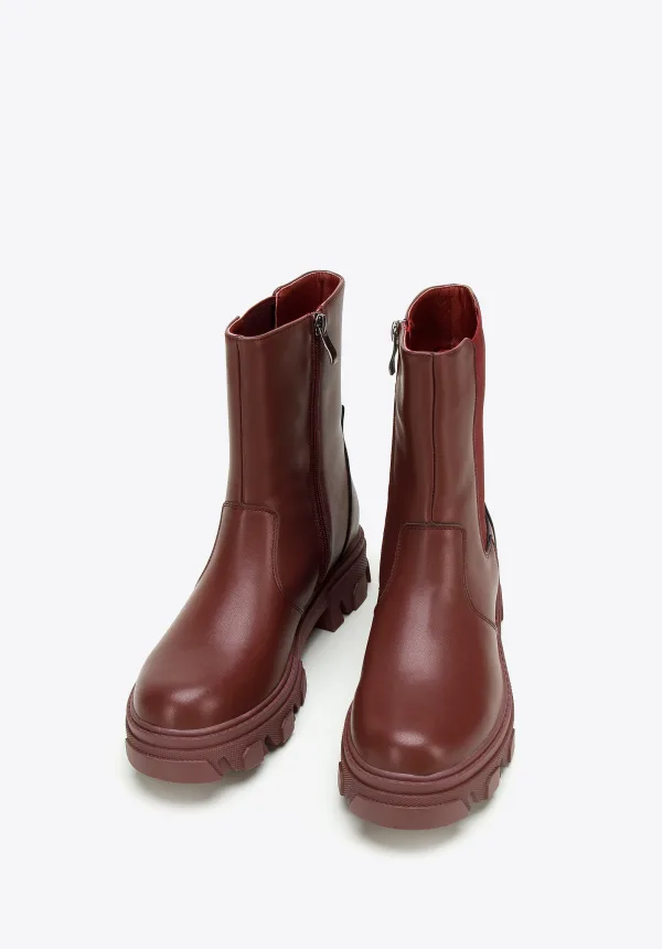 Wittchen Dames Leren Platform Chelsea Boots Kersen Natuurlijk Leer