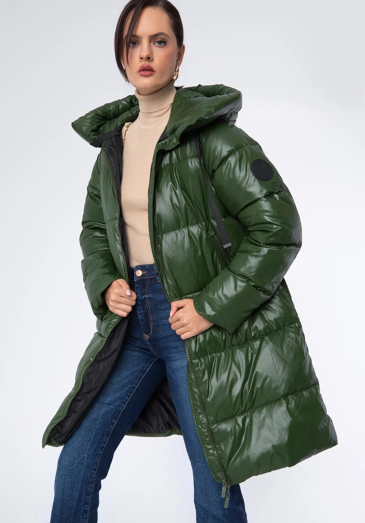 Gewatteerde damesjas. Deze lange, gewatteerde jas is een must-have voor de koudere maanden. Hij heeft een modieuze oversized snit en sluit met dubbele ritsen. Een comfortabele, grote capuchon met trekkoorden beschermt je hoofd tegen de kou. Dit model is gemaakt van een licht glanzend materiaal, wat het geheel een uniek karakter geeft. Draag hem met je favoriete wandelschoenen of enkellaarsjes met hak; je ziet er in elke situatie stijlvol uit. Deze oversized gewatteerde damesjas is een stijlvol accessoire dat niet mag ontbreken in je garderobe. Onze tip: combineer hem met een hoed of oorwarmers in je favoriete kleur. 100% nylon; vulling: 100% polyester; voering: 100% polyester; ritssluiting; zijzakken met ritsen; vaste capuchon met trekkoorden.