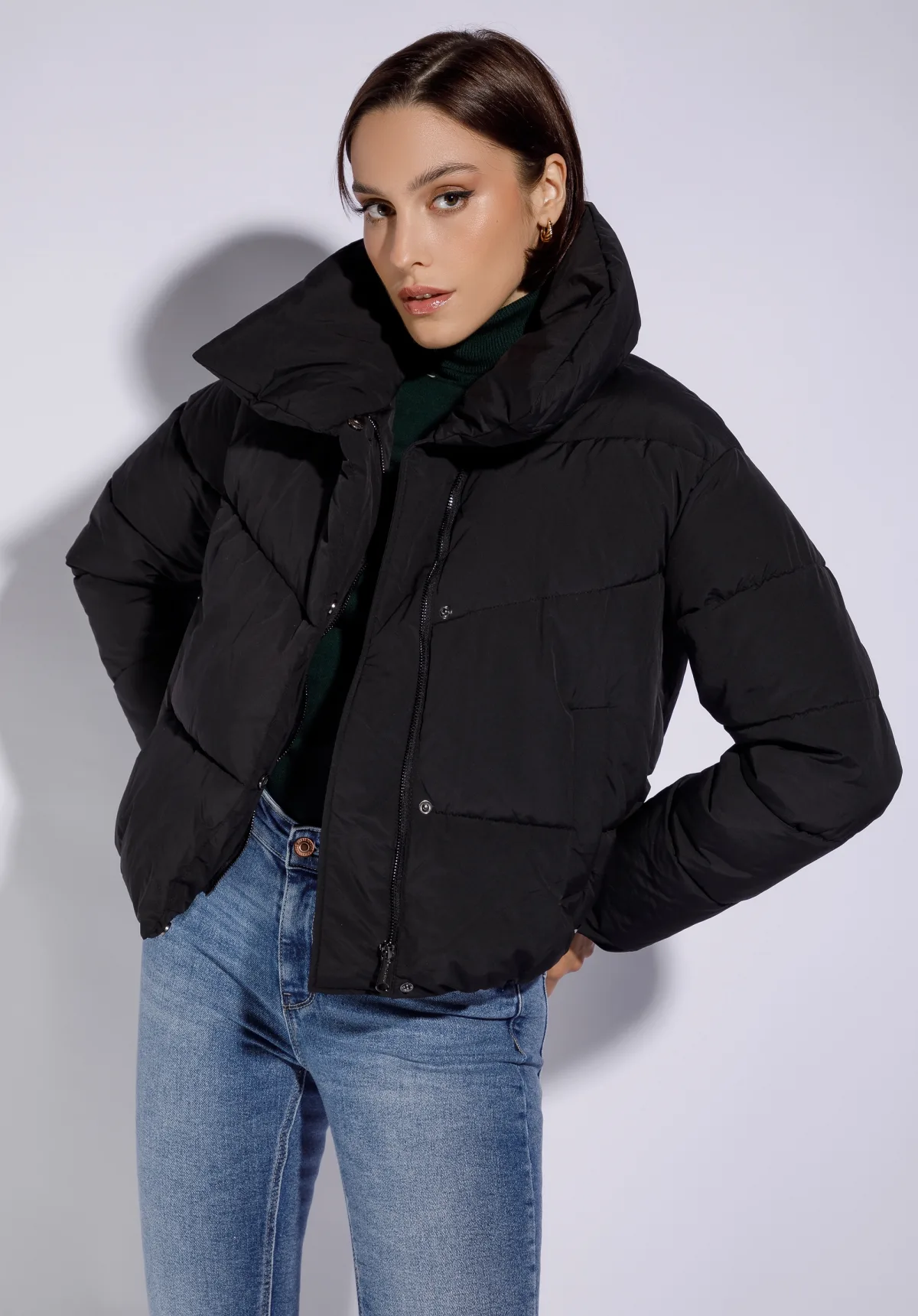 Gewatteerde damesjas Deze gewatteerde damesjas is een modieuze accessoire voor de herfst en winter. Hij is vrij kort en lichtgewicht, maar toch voldoende warm. Hij heeft een brede kraag die je om je nek kunt wikkelen of kunt oprollen en plat kunt leggen. Zijzakken bieden handige opbergruimte voor je handen. De jas heeft een trekkoord in de zoom om je te beschermen tegen de kou. Deze korte jas is de perfecte match met een broek met hoge taille, rokken of midi-jurken. Als je op zoek bent naar een chique maar alledaags kledingstuk in een kortere snit, dan is de oversized gewatteerde damesjas perfect voor jou. Onze tip: je kunt hem zowel sportief als elegant stylen. Samenstelling: 100% polyester; vulling: 100% polyester; voering: 100% polyester; gewatteerde snit; geen capuchon; oversized pasvorm; hoge kraag; ritssluiting met drukknopen; diagonale zijzakken met drukknopen; gewatteerd; elastische banden in de mouwen; trekkoord op de heupen.