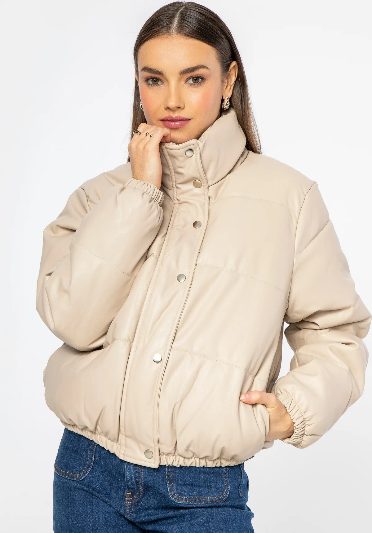 Wittchen Dames PUFF jas van eco-leer, lichtbeige