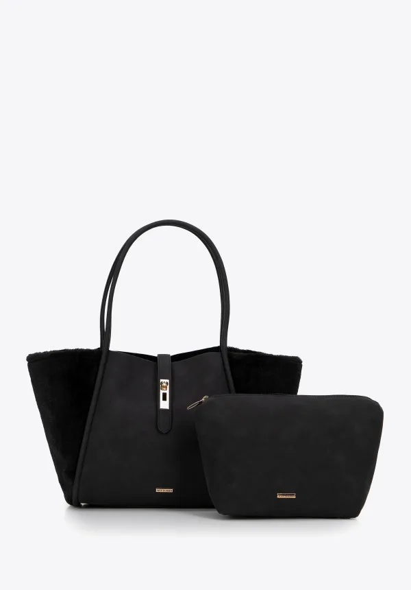 Wittchen Dames shopper van eco-leer en imitatiebont, zwart