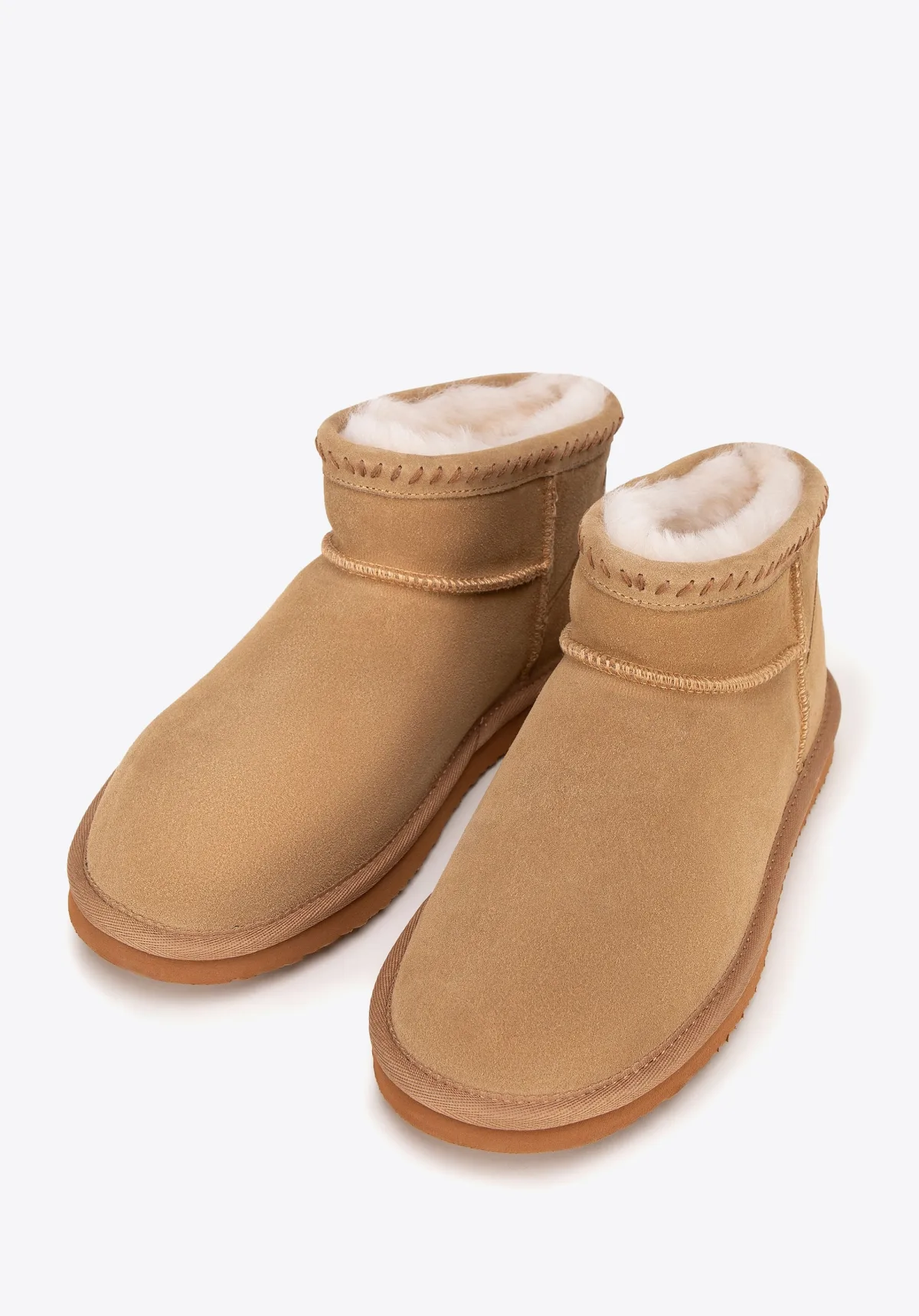 Enkellaarsjes van suèdeleer: comfort voor warme avonden. Deze leren laarzen beschermen niet alleen tegen de kou, maar geven ook stijl aan elke outfit. Ze zijn gemaakt van hoogwaardig suèdeleer, voorzien van decoratieve stiksels en een comfortabele, zachte wollen voering. Het instapmodel maakt ze gemakkelijk aan en uit te trekken, en de stevige synthetische zool zorgt voor een stabiele tred op elke ondergrond. De bontvoering en decoratieve stiksels geven ze een unieke stijl, terwijl de ronde neus een unieke, opvallende look creëert. Deze enkellaarsjes voor dames zijn niet alleen functioneel, maar ook modieus, perfect voor elke gelegenheid. Voor wie: Suède leren damessneeuwlaarzen zijn de perfecte keuze voor praktische vrouwen die niet willen inleveren op comfort en stijl, zelfs niet op koudere dagen. Onze tip: De veelzijdigheid van dit model maakt ze geschikt voor zowel wollen jassen als comfortabele sportjacks. Belangrijkste kenmerken: Materiaal: Gemaakt van hoogwaardig suèdeleer voor duurzaamheid en elegantie. Comfort: Een wollen voering garandeert warmte en comfort op koudere dagen. Praktisch: Dit instapmodel maakt ze gemakkelijk aan en uit te trekken, terwijl de stevige synthetische zool goede grip biedt op diverse ondergronden. Design: Een bontvoering en decoratieve stiksels geven deze laarzen een uniek karakter. Details: Een ronde neus, decoratieve stiksels en een modieus design maken ze de blikvanger van elke outfit. Kies een stijl waarmee je je onderscheidt van de massa: kies voor deze suède enkellaarsjes! Echt leer, natuurlijk leer, synthetisch materiaal