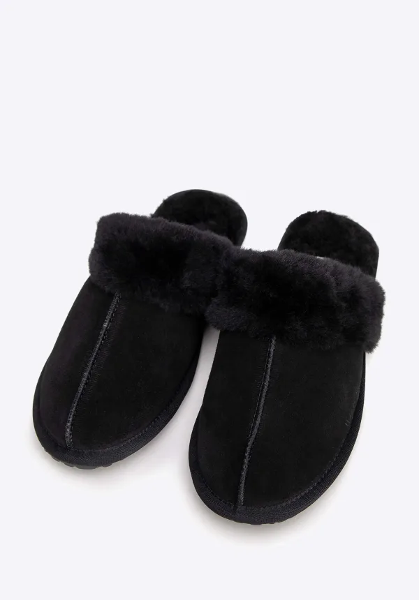 Wittchen Dames Suede Leren Pantoffels Zwart Suede Leer