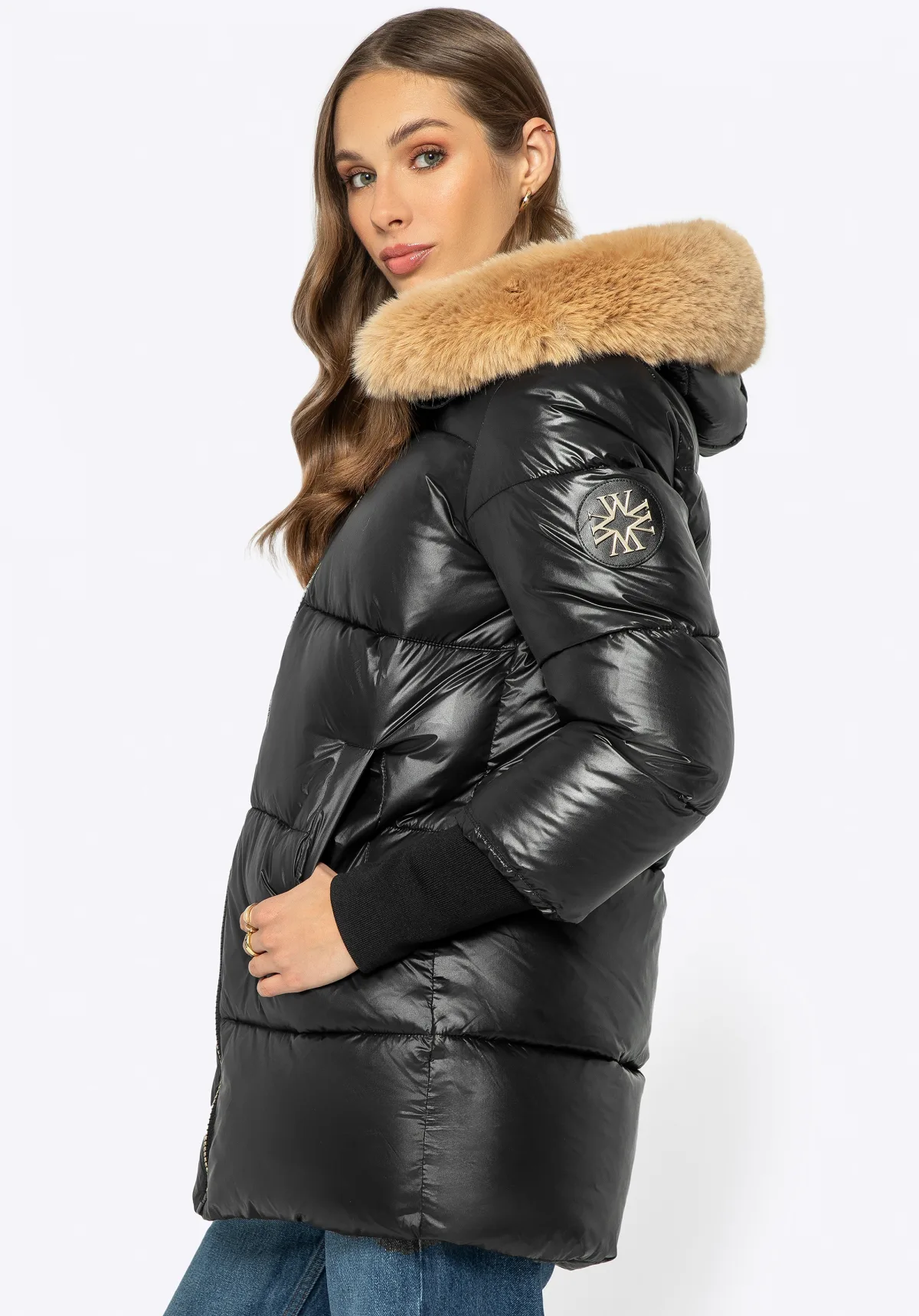 Wittchen Damesjas met Bontkap Zwart Nylon