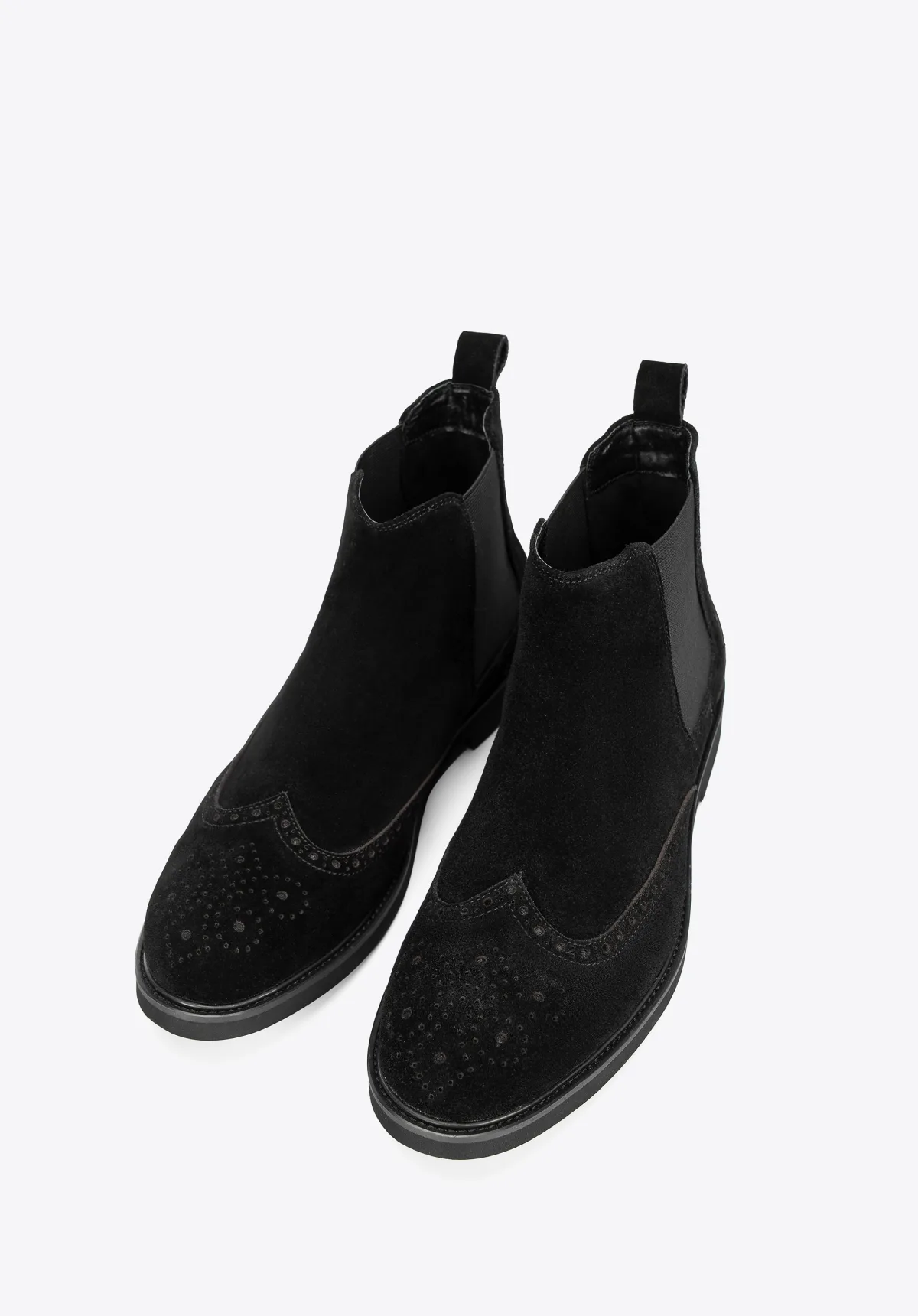 Chelsea Boots met decoratieve perforaties. Onze Chelsea boots voor heren combineren traditionele elegantie met modern comfort. Elk detail is zorgvuldig vervaardigd om niet alleen een premium look te garanderen, maar ook maximaal comfort. Diepgekleurd suède geeft deze boots een uniek karakter en benadrukt uw individuele stijl. Elastische zijpanelen en decoratieve perforaties voegen niet alleen karakter toe, maar zorgen ook voor een comfortabele pasvorm en goede ventilatie. Voor wie: Deze Chelsea boots zijn de perfecte keuze voor mannen die waarde hechten aan zowel elegantie als comfort. Ze zijn perfect voor zowel formele zakelijke looks als meer casual outfits. Onze tip: Combineer suède Chelsea boots met een pak of blazer en een chino. Voeg een klassiek horloge en een elegante laptoptas toe. Belangrijkste kenmerken: Materiaal: Deze Chelsea boots zijn gemaakt van suède leer van de hoogste kwaliteit, wat duurzaamheid en een luxe uitstraling garandeert. Comfort: Een zachte voering van leer en textiel biedt ongeëvenaard comfort, de hele dag lang. Ontwerp: Een klassieke amandelvormige neus en een elegant silhouet maken deze Chelsea boots de perfecte keuze voor elke gelegenheid. Details: Decoratieve perforaties voegen een subtiele stijl toe en benadrukken de verfijnde smaak van de drager. Functionaliteit: Elastische zijpanelen maken ze gemakkelijk aan en uit te trekken en zorgen voor een perfecte pasvorm. Praktisch: Een stevige zool zorgt voor stabiliteit en stevigheid, ongeacht de omstandigheden. Met deze suède Chelsea boots kan elke man zijn persoonlijkheid uiten en zich in elke situatie zelfverzekerd voelen. Echt leer/textiel/synthetisch materiaal