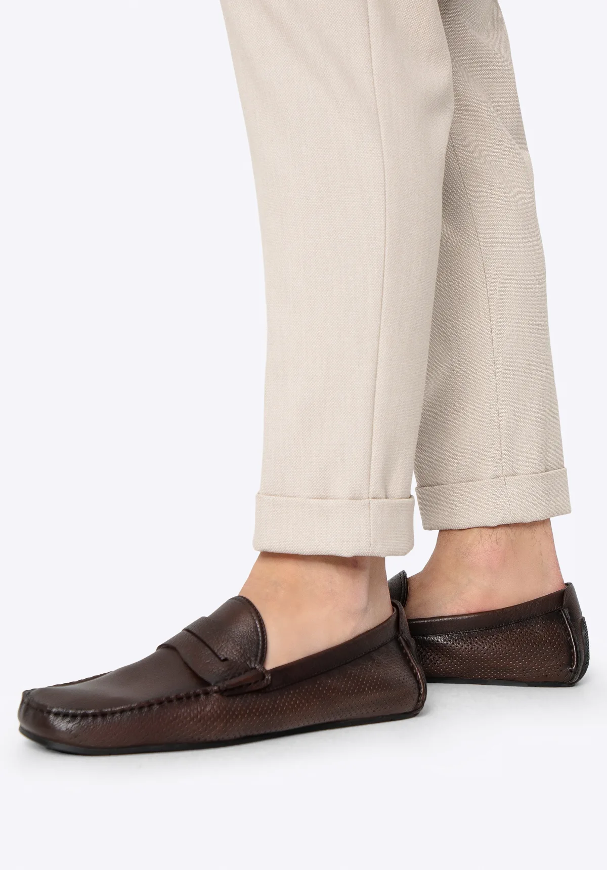 Elegantie die hand in hand gaat met comfort: schoenen van echt rundleer. Deze schoenen hebben alles wat je nodig hebt: tijdloos design, uitzonderlijk comfort en aandacht voor detail. Gemaakt van echt rundleer combineren ze een elegante, klassieke stijl met dagelijkse functionaliteit. Een subtiel, decoratief bandje aan de voorkant voegt een vleugje chic toe, terwijl de verstevigde hiel zorgt voor uitstekende stabiliteit en comfort, vooral tijdens het autorijden. Bovendien zorgt het materiaal met subtiele perforaties voor ademend vermogen, waardoor ze comfortabeler zijn om te dragen op warmere dagen. Voor wie zijn ze? Als je de voorkeur geeft aan een klassieke stijl, maar niet wilt inleveren op comfort, dan zijn deze schoenen perfect voor jou. De lichtgewicht constructie zorgt voor comfort de hele dag, of je nu tijd doorbrengt op kantoor of naar een avondvergadering gaat. Onze tip: combineer ze met een rechte broek of jeans, en voor dagelijks gebruik met een casual overhemd of T-shirt. Een leren tas of rugzak in een minimalistische stijl maakt je outfit perfect af. Belangrijkste kenmerken: Materiaal: Natuurlijk rundleer is duurzaam, bestand tegen beschadigingen en past zich perfect aan de voet aan. Verstevigde hiel: Zorgt voor duurzaamheid, voetstabiliteit en comfort, vooral tijdens het autorijden. Slip-on ontwerp: Snel aan en uit te trekken, perfect voor dagelijks gebruik. Decoratieve band aan de voorkant: Elegant detail dat het verfijnde karakter van de schoen benadrukt. Geperforeerd ontwerp: Verhoogt de ademende werking en zorgt voor comfort de hele dag. Comfortabele en functionele kenmerken: Leren binnenzool: Garandeert zachtheid en comfort, past zich aan de vorm van de voet aan en elimineert het risico op schaafwonden. Synthetische en leren voering: Optimaal comfort en duurzaamheid, past zich perfect aan de voet aan. Rubberen zool: Biedt uitstekende grip, demping en stabiliteit. Kies schoenen die stijl combineren met dagelijks comfort; uw betrouwbare metgezellen voor elke gelegenheid! natuurlijk leer natuurlijk leer / synthetisch materiaal synthetisch materiaal