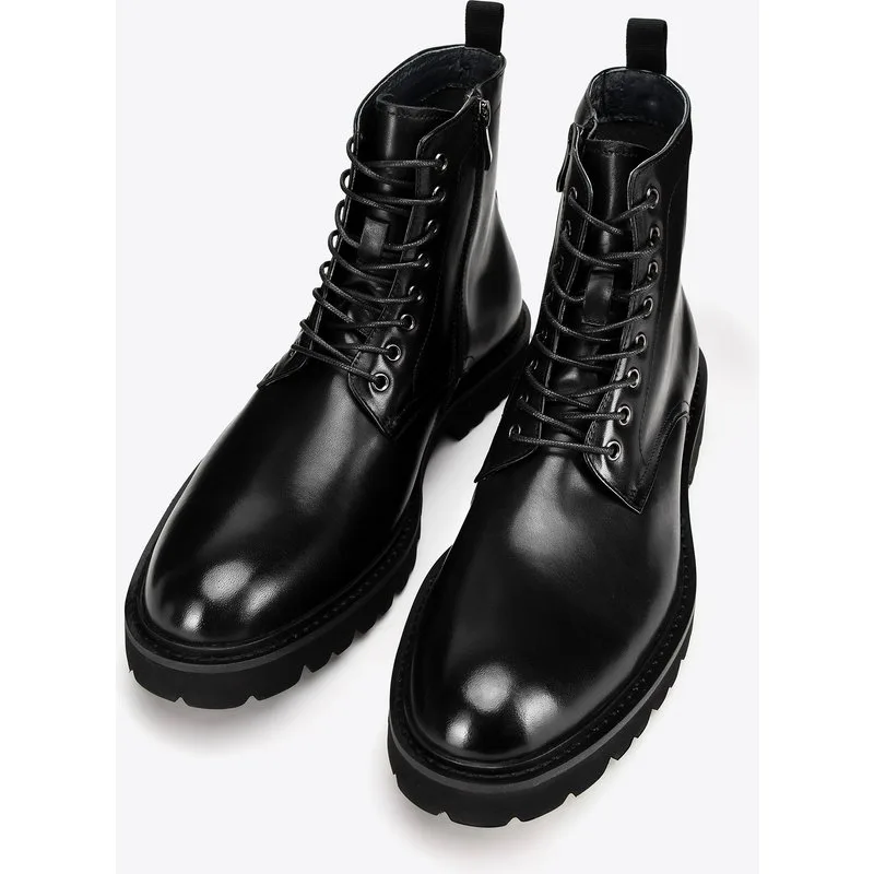 Leren gevechtslaarzen – klassiek en comfortabel in één. Dit leren schoenmodel combineert elegantie en comfort en voldoet aan de behoeften van elke moderne vrouw. Ze zijn gemaakt van hoogwaardig volnerfleer en hebben een hoog model dat tot boven de enkel reikt en uitstekende ondersteuning en stabiliteit biedt. Voor wie zijn ze? Deze herenlaarzen zijn de perfecte keuze voor mannen die waarde hechten aan elegantie, duurzaamheid en comfort. Perfect voor zowel op kantoor als bij informele gelegenheden waar stijl en comfort essentieel zijn. Onze tip: Ze combineren prachtig met elegante broeken, chino's en jeans. Ze passen perfect bij overhemden, truien en blazers, maar ook bij meer casual outfits zoals jassen en mantels. Belangrijkste kenmerken: Materiaal: Hoogwaardig volnerfleer is niet alleen esthetisch aantrekkelijk, maar ook bestand tegen externe factoren. De natuurlijke eigenschappen maken de schoenen duurzaam en slijtvast. Stijl: De hoge schacht biedt uitstekende ondersteuning en stabiliteit voor de voet. Sluiting: De combinatie van veters en een rits combineert traditionele stijl met moderne functionaliteit. De veters zorgen voor een perfecte pasvorm, terwijl de rits het gemakkelijk aan- en uittrekken vergemakkelijkt, wat tijd bespaart en comfort garandeert. Design: De amandelvormige neus voegt elegantie en subtiele chic toe aan de schoenen en biedt voldoende ruimte voor de tenen. Binnenkant: De binnenkant van de schoenen is zorgvuldig afgewerkt met materialen die prettig aanvoelen en de hele dag comfort bieden. Door te kiezen voor deze combat boots voor heren, investeert u in comfort en stijl die u bij elke stap begeleiden. Echt leer, echt leer / synthetisch materiaal, synthetisch materiaal