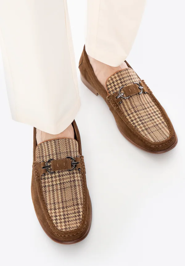 Wittchen Heren mocassins van bruin en beige geruit suède leer