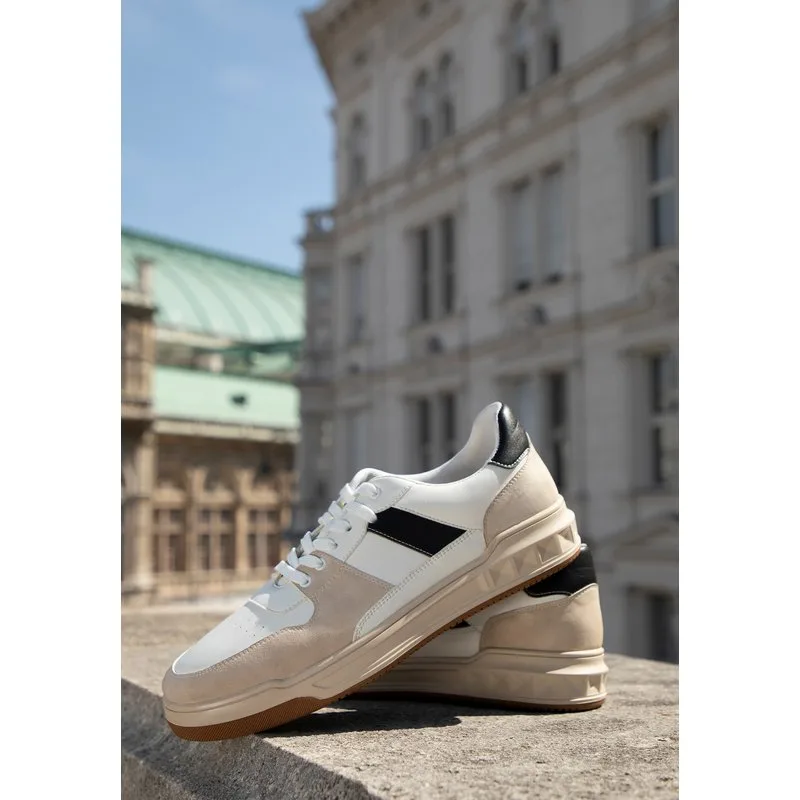 Wittchen Heren wit en beige eco-leren sneakers