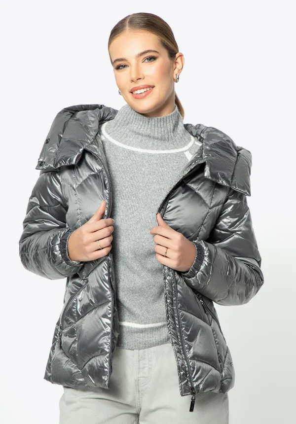 Wittchen Zilveren Nylon Gewatteerde Jas voor Dames met Zigzagpatronen