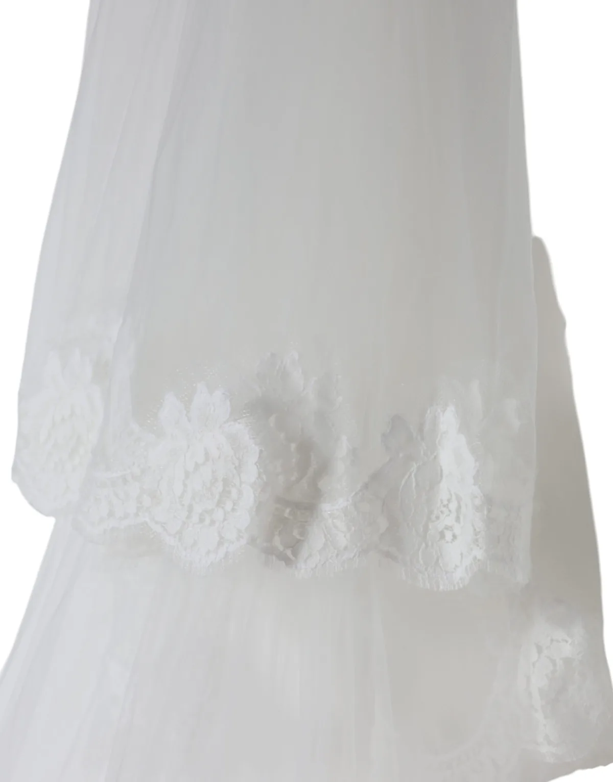 Witte Bloemen Kant Nylon Vloerlange Bruidsluier Prijzen