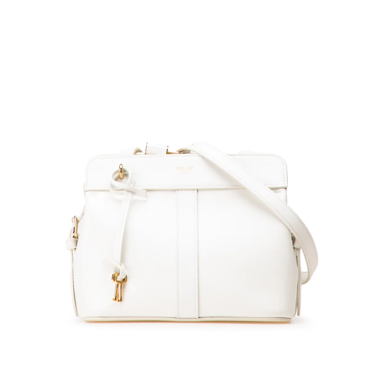 Draag moeiteloos, straal elegantie uit. Deze vintage witte leren crossbodytas biedt handsfree gemak zonder in te boeten op stijl. De gouden hardware voegt een vleugje verfijnde luxe toe, waardoor je dagelijkse look naar een hoger niveau wordt getild. Geniet van het duurzame, onderhoudsarme ontwerp, ontworpen voor blijvende schoonheid. Het sleutelhanger-detail biedt een unieke accent. Perfect om een verfijnde touch toe te voegen aan elke outfit, die moeiteloos praktischiteit en tijdloze charme in je dagelijkse avonturen samenbrengt. Afmetingen: 15 x 19 x 11 cm Conditiebeoordeling: B+ Informatie over de staat: Buitenrug gevlekt met andere. Buitenbodem gevlekt met andere. Buitenvoorkant gevlekt met andere. Buitenhandgreep gekreukt en versleten. Buitenhandgreep gevlekt met andere. Sleutel gekrast. Interieurlining gevlekt met andere. Praktische bevestiging gekrast. Buitenbovenkant versleten. Buitenbovenkant gevlekt met andere. Rits gekrast.