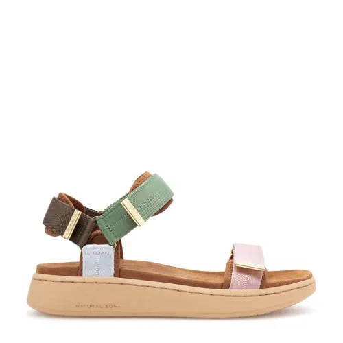WODEN Sandaal 'Line' lichtblauw / chocoladebruin / riet / rosa