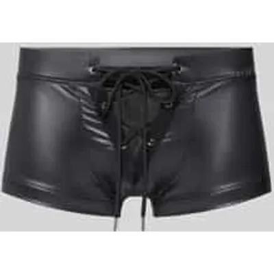 Heren boxershorts van WOH;Elastische materiaalmix;Slim Fit;Model 'Night';Vetersluiting;Leerlook;Logo-applicatie
