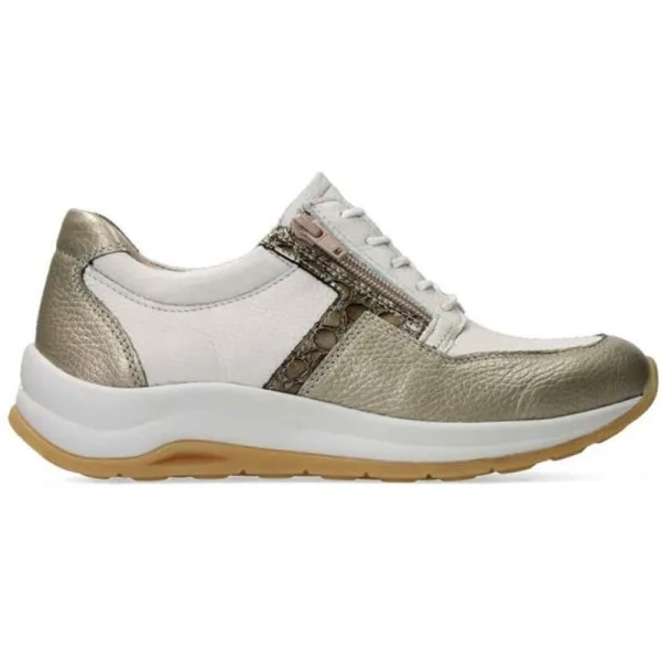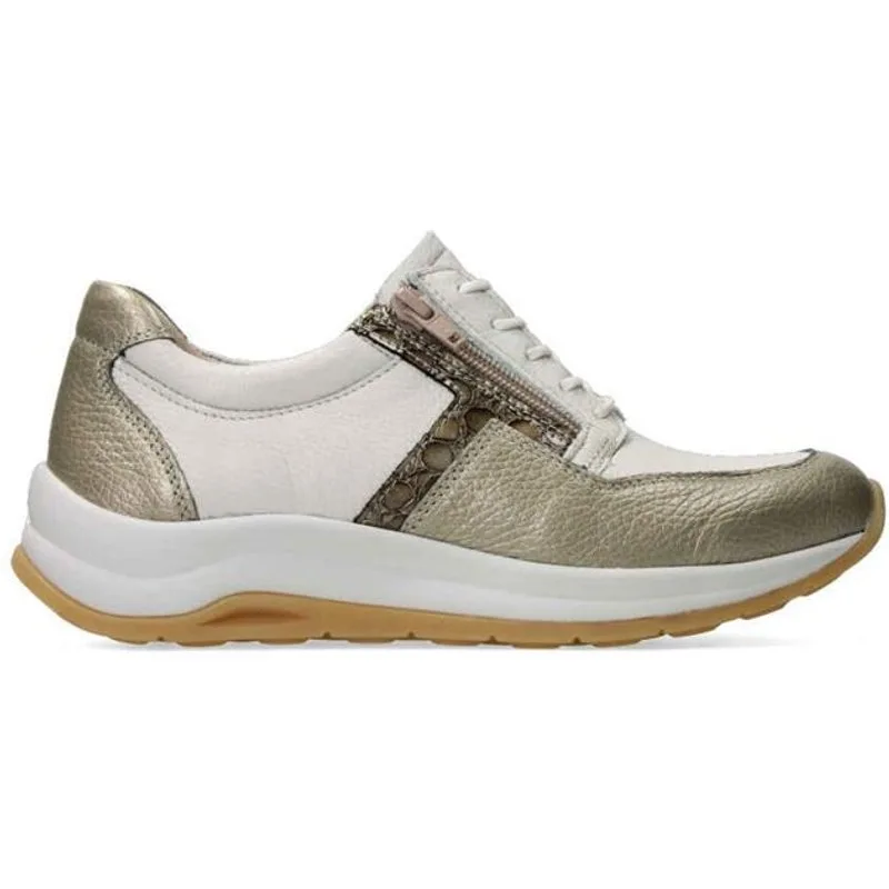 Lopen gaat bijna vanzelf met deze stoere lage veterschoen. De Comrie is namelijk uitgerust met een unieke zool: deze is dempend en heeft een oplopende neus, waardoor op een subtiele manier de afwikkeling van de voet wordt gestimuleerd. Deze Wolky heeft een leren bovenwerk met een ‘derby-sluiting’ waardoor je een extra ruime ‘instap’ hebt. Wanneer je bij dit type sluiting de veters wat minder strak aantrekt, is de schoen ook perfect voor vollere voeten, zonder dat je ook maar iets aan steun en support verliest. Door de veter-rits-combinatie kun je de schoen eenvoudig aan- en uittrekken. Je staat dus zo klaar voor een heerlijke wandeling! Pasvorm: De Comrie valt wat klein. Twijfel je tussen twee maten? Kies dan een maatje groter (richtlijn breedtemaat H)De speciaal ontworpen achterkant voorkomt slippen van de hielMet polsterrand – een soort kussentje voor je hielMet leer omtrokken voetbedUitneembaar anatomisch voetbed – geschikt voor eigen zooltjesVolledig met leer gevoerd voor een goede vochtopnameGemaakt van zacht en soepel leerFlexibele zoolUitgerust met veter én rits – makkelijk in- en uitstappen en optimaal verstelbaarDempende EVA-tussenzool Effectieve hakhoogte: 1 cm (hakhoogte minus de zooldikte aan de voorzijde) Gebaseerd op maat 38, het aantal centimeters kan bij andere maten afwijken