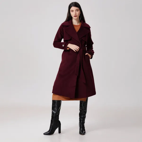 Een verfijnd item met schouderflappen, een brede trenchcoatkraag, versierd met een riem om in de taille te strikken en tot op de knie. Een tijdloos item voor de koudste momenten van het seizoen, voor semi-formele en stedelijke gelegenheden. Productdetails: Model: recht, met riem in de taille Lengte: 109 cm Rekbare kraag Lange mouwen met geknoopte bandjes aan de manchetten Drukknopen aan de binnenkant en riem