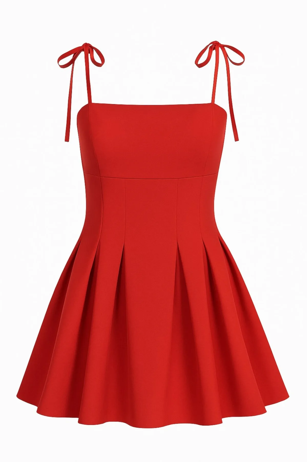 Design: Gevoerde zoom/rand, Om te knopen/binden; Type sluiting: Ritssluiting; Halstype: Carréhals; Motief: Effen; Soort bandjes: Spaghettibandjes; Details: Plooien; Extra's: Op staal naden; Lengte: Kort/mini; Snit: Getailleerd; Pasvorm: Normale pasvorm; Armlengte: Mouwloos