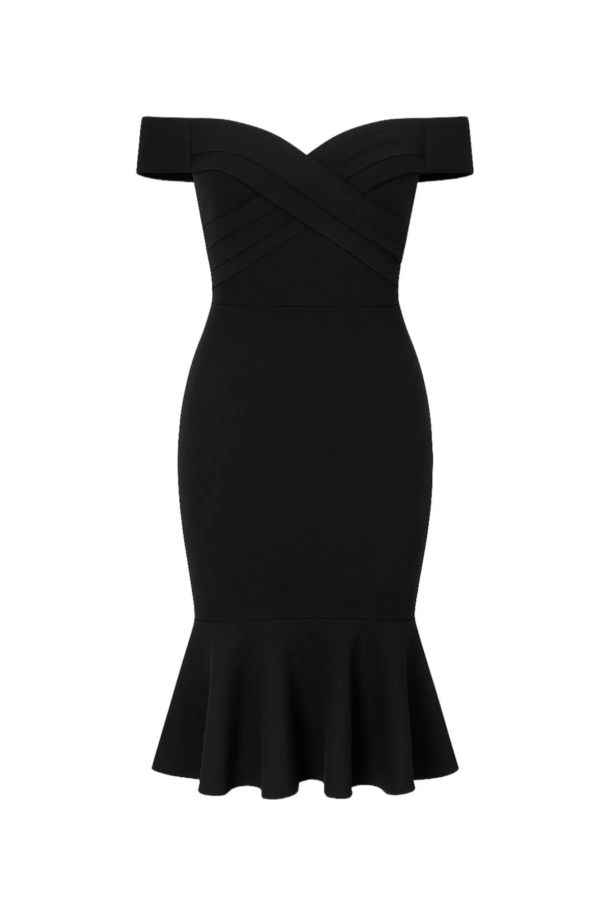 Design: Gevoerde zoom/rand; Halstype: Carmen hals; Motief: Effen; Details: Volant; Extra's: Op staal naden; Lengte: 3/4 lengte; Pasvorm: Normale pasvorm; Armlengte: Mouwloos