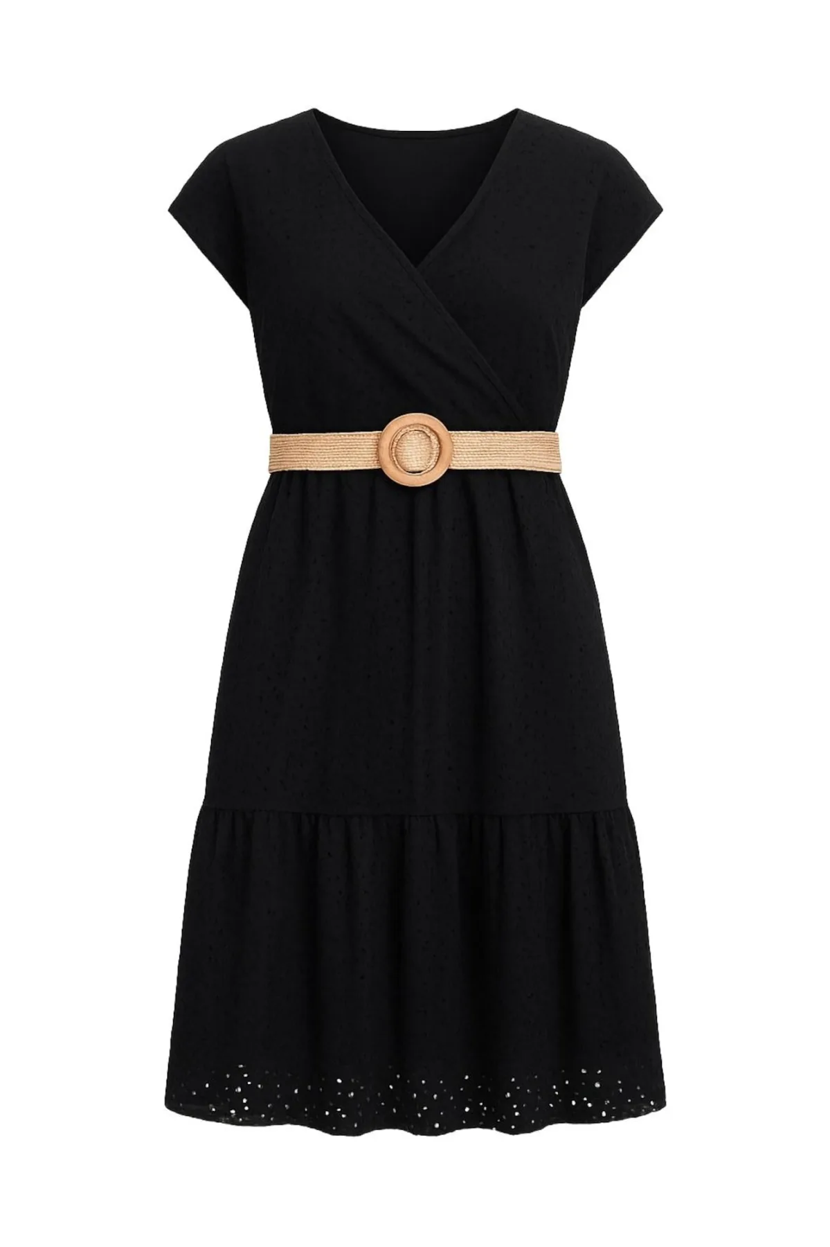 Design: Gevoerde zoom/rand, Flare, Met riem; Halstype: V-hals; Soort bandjes: Brede bandjes; Details: Mesh; Extra's: Op staal naden, Voelt zacht aan; Lengte: Knielengte; Snit: Getailleerd; Pasvorm: Normale pasvorm; Armlengte: Mouwloos