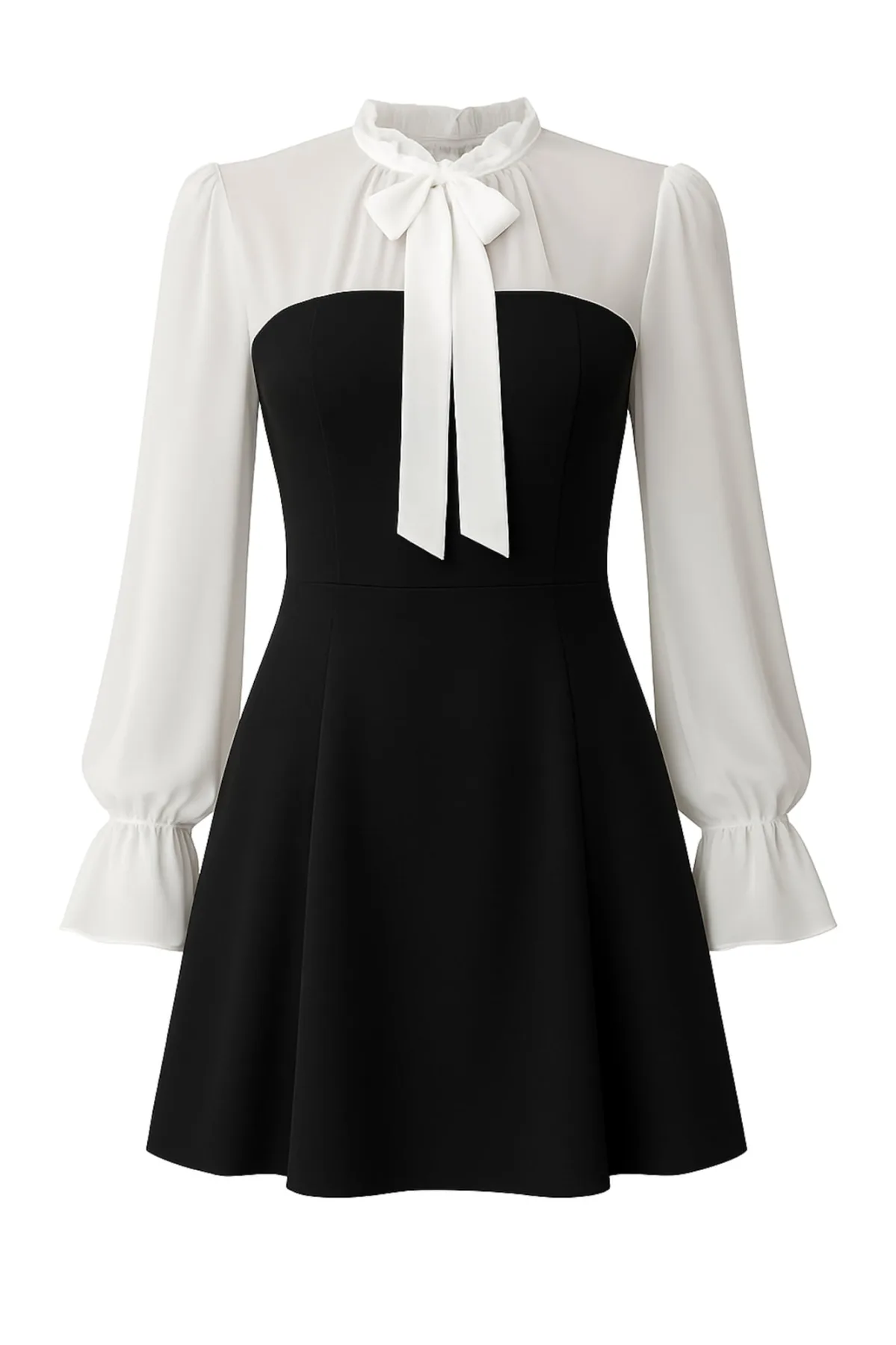 Design: Ritssluiting, Pofmouwen, Om te knopen/binden; Type sluiting: Ritssluiting; Halstype: Opstaande kraag; Motief: Color-Blocking; Details: Ruches, Gedrapeerd; Extra's: Licht transparant, Op staal naden; Lengte: Kort/mini; Snit: Getailleerd; Pasvorm: Slanke pasvorm; Armlengte: Lange mouw