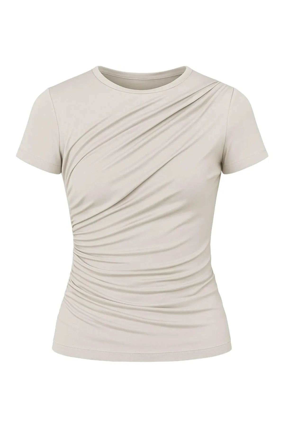 Design: Gevoerde zoom/rand, Nektape; Materiaal: Jersey; Halstype: Ronde hals; Motief: Effen; Details: Gedrapeerd; Extra's: Op staal naden, Voelt zacht aan; Pasvorm: Slanke pasvorm; Armlengte: Kwartmouw; Lengte: Normale lengte