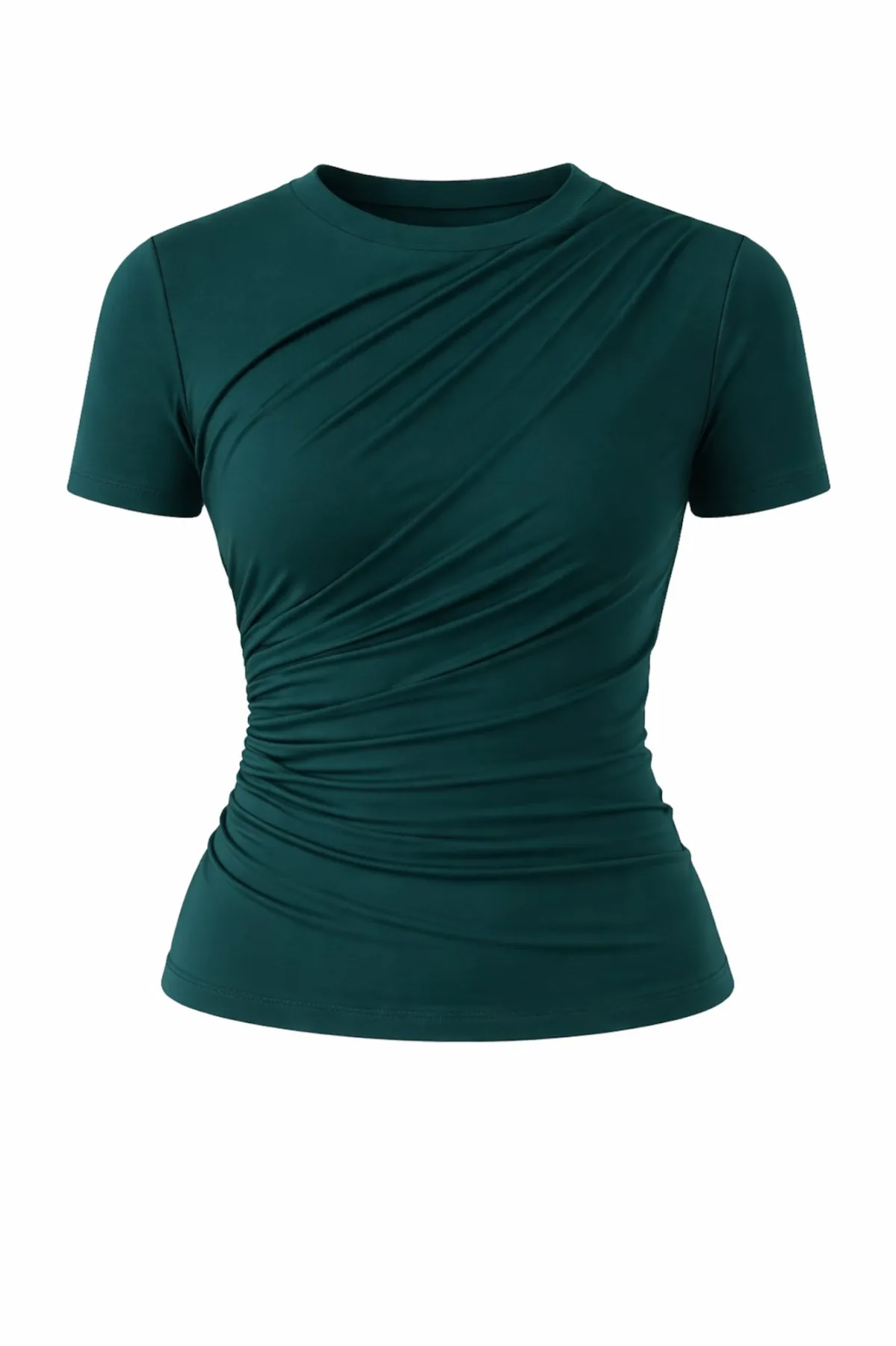 Design: Gevoerde zoom/rand; Materiaal: Jersey; Halstype: Ronde hals; Motief: Effen; Details: Gedrapeerd; Extra's: Voelt zacht aan; Pasvorm: Slanke pasvorm; Armlengte: Kwartmouw; Lengte: Normale lengte
