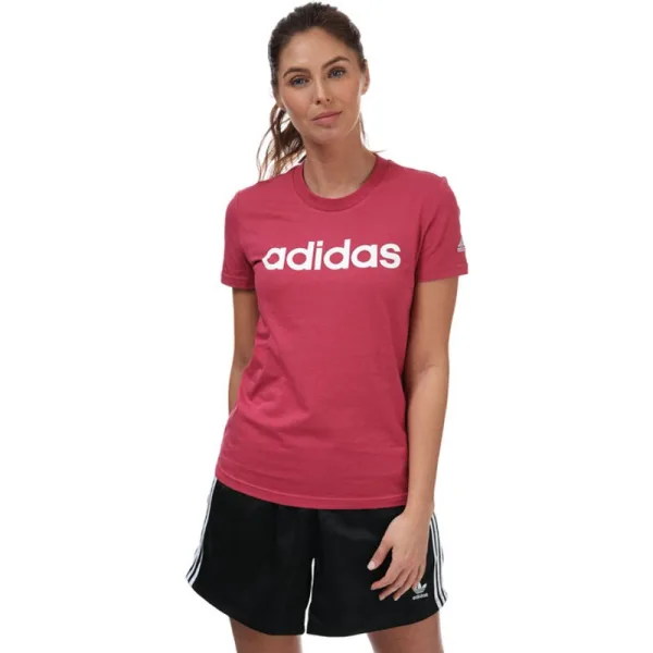 Womens adidas Essentials Logo T-Shirt in pink.- Crewneck.- Short sleeves.- adidas branding print on chest.- Slim fit.- Main material: 100% Cotton. Rib Part: 95% Cotton 5% Elastane. Machine washable. - Ref: GL0775