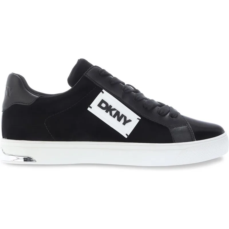 Womens DKNY Aelix Lace Up Trainers in black.- Man made upper.- Lace-up fastening.- Distinctive black logo strap detail.- Classic-inspired round toe.- Metallic silver heel tab.- Rubber outsole.- Ref: K3544125BLK