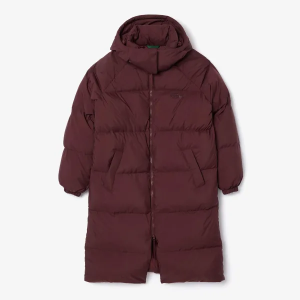 Women’s Lacoste Long Oversized Down Logo Jacket in Brown