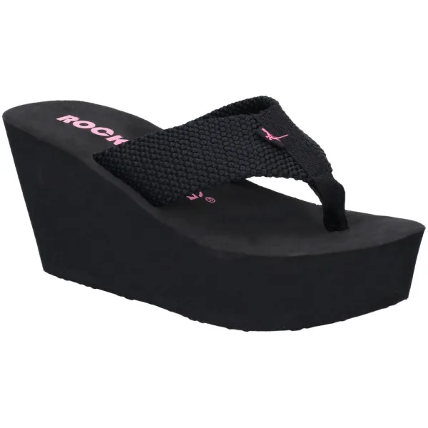Womens Rocket Dog Diver Wedge Sandals in black.-Single toe post design.- Textile webbing straps.- Cushioned EVA footbed.- High wedge heel.- Lightweight.- Rocket dog branding to straps and footbed.- Textile straps. Sole material EVA.- Ref: DIVERWB