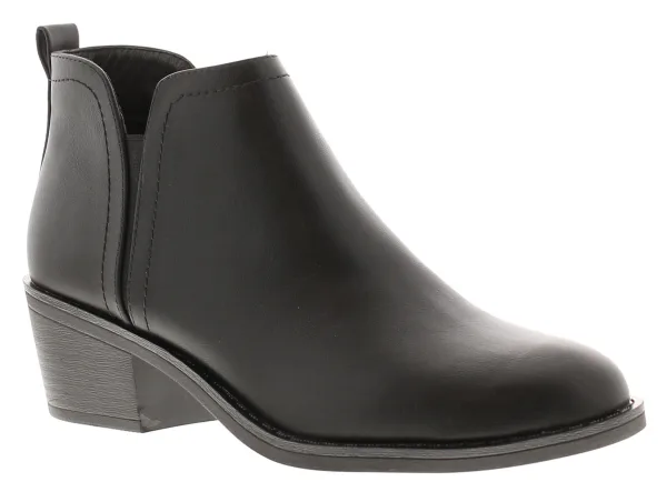 Womens Rocket Dog York Ankle Boots in black.- Black faux leather.- Slip on style.- Pull on with back pull tab and elastic gore entry.- Microfiber lining.- Rubber sole with chunky stacked heel.- Ref: YORK