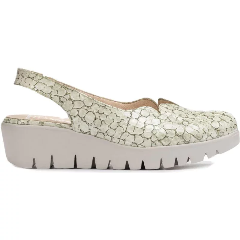 Groen gegraveerde gewatteerde lakleren sleehak, met golfdetail op de voorband en een achterband met intern elastiek voor een betere pasvorm en ondersteuning. De Maxi-trackzool is ontwikkeld met WondersFly ™ -technologie die lichtheid en comfort garandeert. Maak je klaar voor het gevoel, YES WE FLY. MemoryGel-binnenzool voor extra comfort.